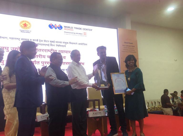 SME Chamber of India's "Best Exporter of the Year Award" at the hands of Smt. Arundhati Bhattacharaya, Chairman of SBI.